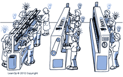 A espera também pode desencadear desperdícios adicionais na forma de defeitos se a espera desencadear uma enxurrada de atividades para “recuperar o atraso” que resulta no não cumprimento do trabalho padrão ou na adoção de atalhos.