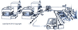 Excesso de produção: 1) Programações de produção instáveis; 2) Informações imprecisas de previsão e demanda; 3) As necessidades do cliente não são claras; 4) Automação deficiente; 5) Tempos de configuração longos ou atrasados; 6) Automação mal aplicada.